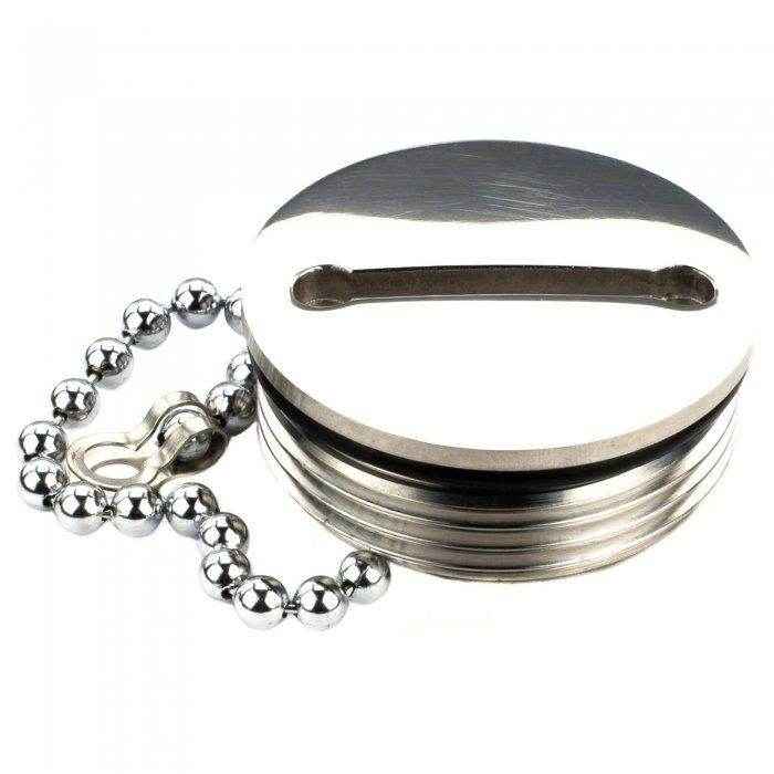 Replacement deck fill cap & chain for Whitecap 6123, 6124, 6125, & 6126 deck fills.